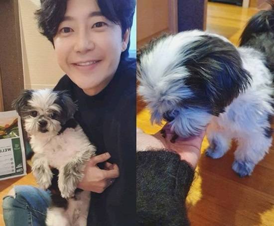 사진 속에는 반려견을 안고 카메라를 향해 미소짓고 있는 김태진의 모습이 담겨 있다.