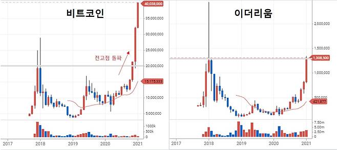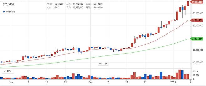 이제 1,000원만 더 오르면 비트코인 4천만원 시대를 맞이하게 되는데요. 역사적인 신고가 갱신이 이어지는 모습입니다.
