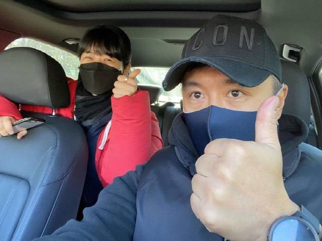 사진에는 딸의 편입 시험을 위해 직접 차를 몰고 나선 진태현과 딸 다비다 양의 모습이 담겼다.