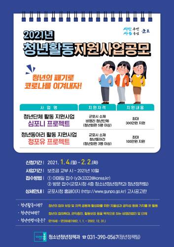 군포시, 2021년 청년 활동 지원사업 공모