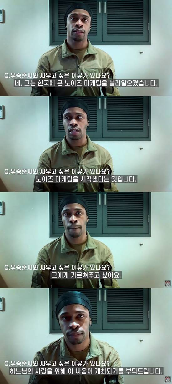 이어 "저를 더욱 화나게 하는 것은 그가 또다시 노이즈마케팅을 시작했다는 것이다. 그의 잘못을 이용해서 유튜브에서 수익을 창출하고 조회 수를 올리기 위해서"라고 유승준과 경기를 치르고 싶은 이유를 밝혔다