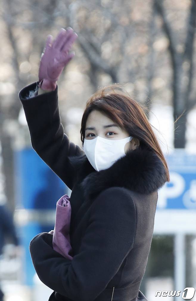 (서울=뉴스1) 권현진 기자 = 배우 박하선이 7일 서울 양천구 목동 SBS에서 열린 '박하선의 씨네타운'을 위해 출근을 하며 인사를 하고 있다. 2021.1.7/뉴스1