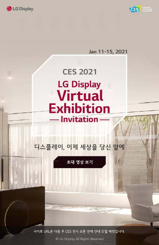 LG디스플레이는 CES 2021에서 '디스플레이, 이제 세상을 당신 앞에'(Display, now the real world comes to you)라는 테마로 처음으로 일반 관람객에게 전시를 공개한다고 7일 밝혔다.