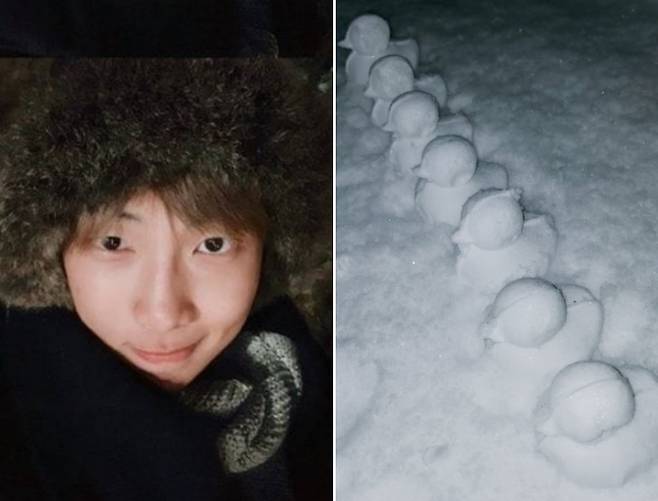 그룹 방탄소년단 RM이 오리 눈집게로 깜찍한 눈사람을 만들었다.