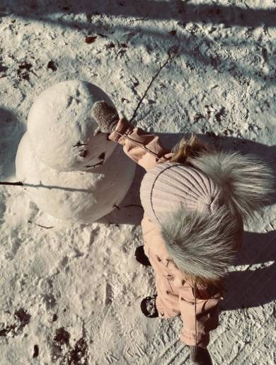 공개된 사진 속에는 밤새 내린 눈을 밟으며 행복해하고 있는 한채아 딸의 모습이 담겼다. 누군가 만들어 둔 눈사람을 만지고 있는 앙증맞은 일상이 미소를 자아낸다.