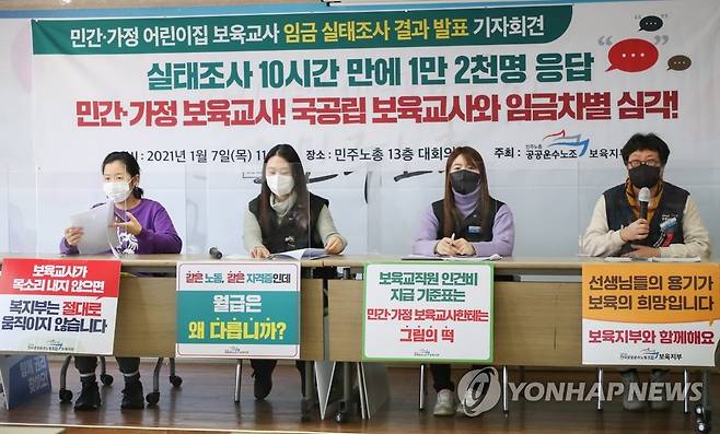 민간·가정 어린이집 보육교사 임금 실태조사 결과 발표 기자회견
