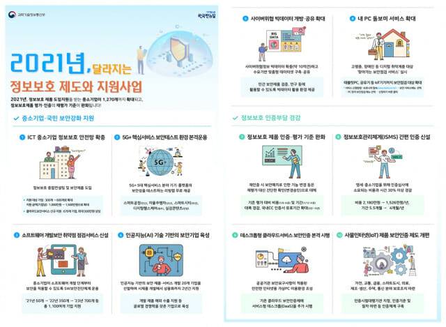 (지디넷코리아=김윤희 기자)과학기술정보통신부는 ▲ICT 중소기업 정보보호 안전망 확충 ▲정보보호제품 평가․인증 부담완화 ▲정보보호관리체계(ISMS) 간편 인증 신설 등 새해 달라지는 정보보호 제도와 지원 사업의 주요 내용을 7일 발표했다.