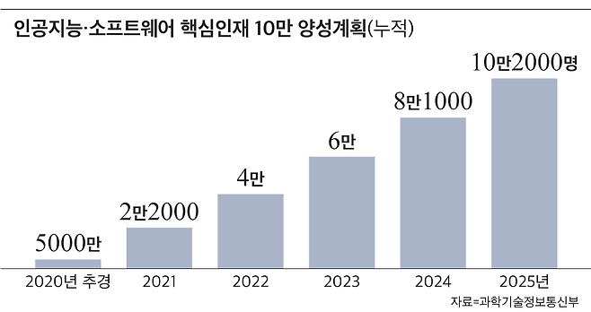 먼저 '고급·전문인재' 확보와 관련해 AI 관련 석·박사급 인재양성을 위한 인공지능 대학원을 올해 2개교 추가 선정해 총 10개교로 확대한다.