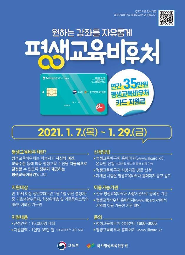 kr, www.lllcard.kr)에서 '2021년 평생교육 이용권(바우처)' 신청을 받는다고 밝혔다.