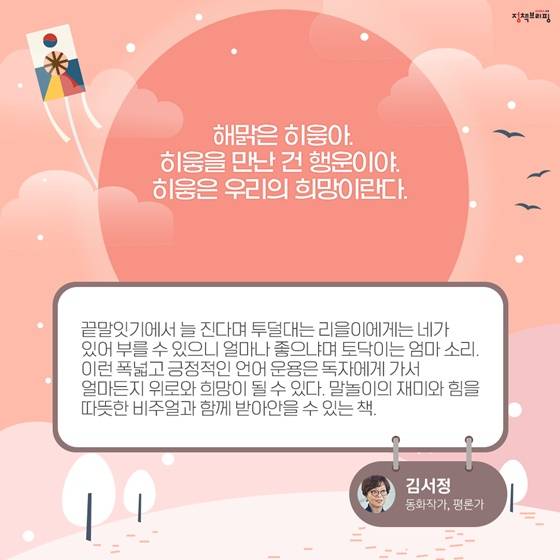 “해맑은 히읗아. 히읗을 만난 건 행운이야. 히읗은 우리의 희망이란다.”