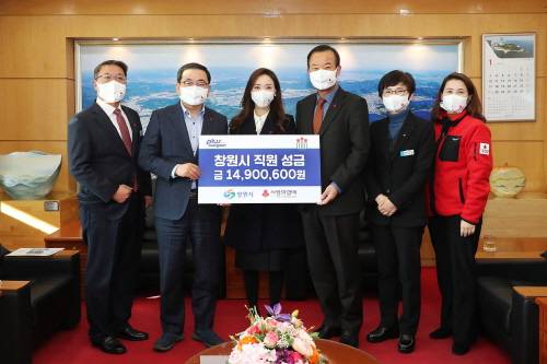 경남 창원시(시장 허성무)는 7일 전 직원들이 사랑의 열매 달기 캠페인을 통해 모금한 성금 1천490만원을 공동모금회에 기탁했다고 밝혔다.