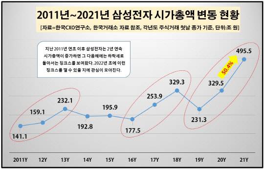 올해 주식 종목별 시가총액 순위는 삼성전자가 495조4920억원으로 1위를 차지했고, SK하이닉스 91조7283억원, LG화학 62조7566억원, 삼성전자우 61조2228억원, 삼성바이오로직스 54조8508억원 등의 순이었다. 네이버(48조원)와 셀트리온(47조원), 삼성SDI(46조원), 현대차(44조원), 카카오(35조원)가 뒤를 이어 10위 안에 들었다.