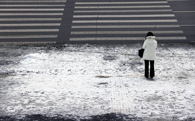 Heavy snowfall overnight covers Seoul and its surrounding areas in white on Thursday morning. People struggle to commute to work as the cold weather and slippery roads disrupt travel.