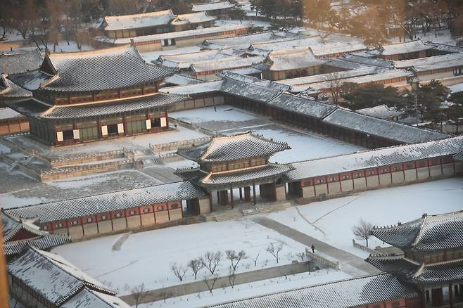 The main palace Gyeongbokgung in central Seoul has transformed into a dazzling, winter wonderland, with its main throne hall, Geunjeongjeon, and gate Heungnyemun cloaked in a blanket of white.