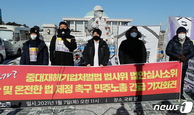 민주노총 '중대재해기업처벌법, 온전한 법 제정 촉구'