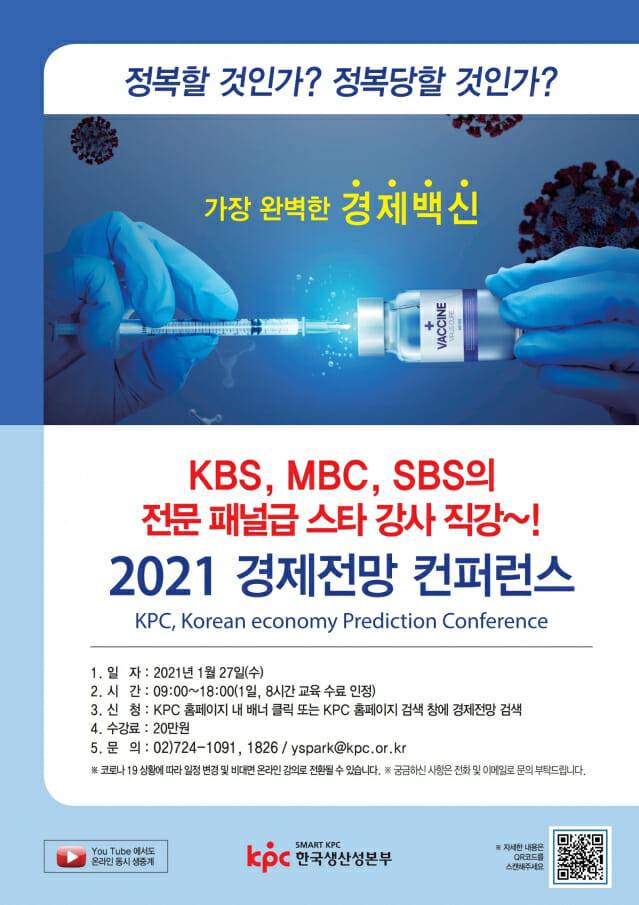 한국생산성본부(KPC)는 코로나19가 촉발한 경제 위기 타개를 위해 오는 27일 서울 종로구 한국생산성본부 강의장에서 '2021 경제전망 컨퍼런스(Korean economy Prediction Conference)'를 개최한다.