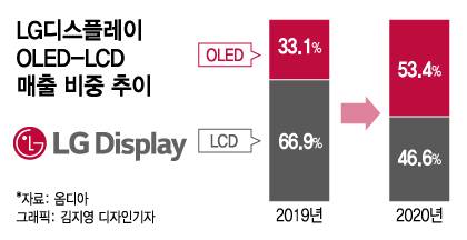 TV 부문에서 OLED가 LCD 매출을 제친 것은 LG디스플레이가 2013년 세계 최초로 55인치 OLED TV 패널 양산에 성공한 지 7년 만이다.