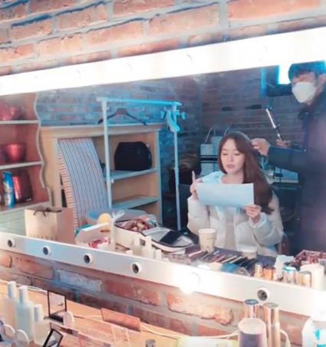 이어 스토리에도 촬영을 하기 전 메이크업을 받는 과정을 영상으로 올리기도 했다.