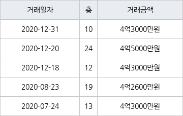 인천 연수동 연수우성1차 133㎡ 4억3000만원에 거래