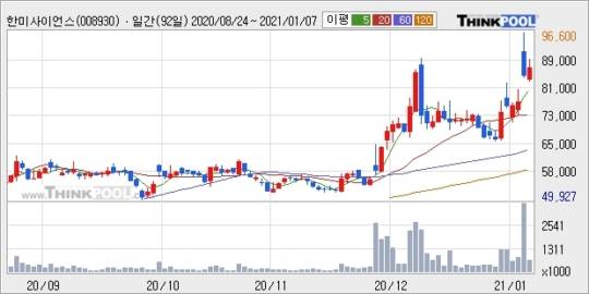 한미사이언스, 전일대비 5.09% 상승.. 이 시각 거래량 76만3036주