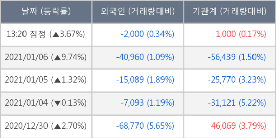 거래량은 76만3036주로 전거래일 대비 20.03% 수준이다.