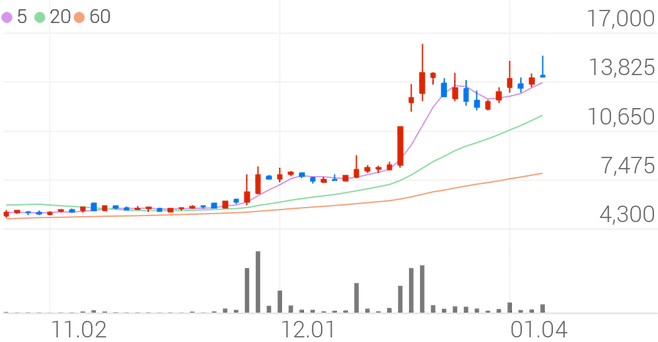 전일 대비 3.90% 상승한 14,650원에 거래되고 있다.