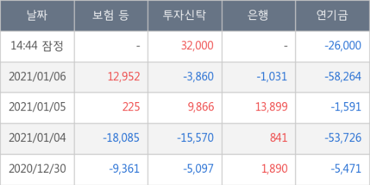 14시 44분 잠정집계에 따르면, POSCO은 외국인과 기관이 각각 3,067주, 6,000주를 순매수 중이다. 기관 중에 투자신탁과 은행의 자금이 유입되었다.