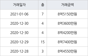 지난 2021년 1월 6일 같은 면적형인 7층 물건이 8억5150만원에 실거래된 것과 비교해 같은 가격이다.