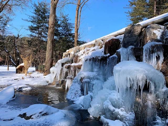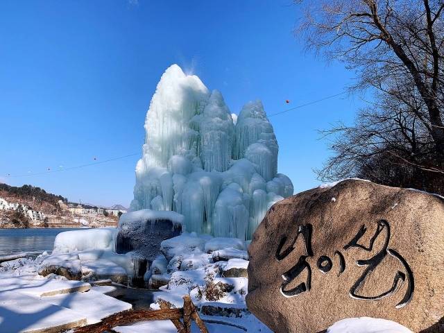 폭설과 매서운 추위를 보인 7일 친환경 언택트 관광지로 주목받고 있는 남이섬에 빙벽이 조성돼 있다. 남이섬 제공