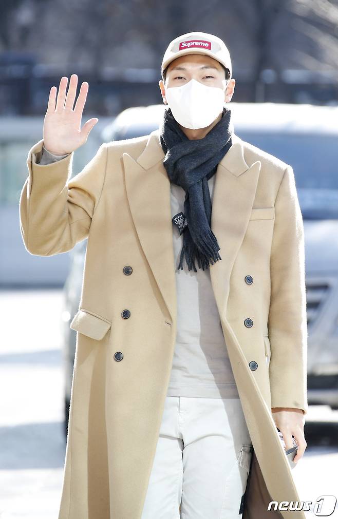 (서울=뉴스1) 권현진 기자 = 가수 김필이 7일 서울 양천구 목동 SBS에서 열린 SBS 라디오 파워FM ‘두시탈출 컬투쇼’를 위해 방송국으로 들어서며 인사를 하고 있다 2021.1.7/뉴스1