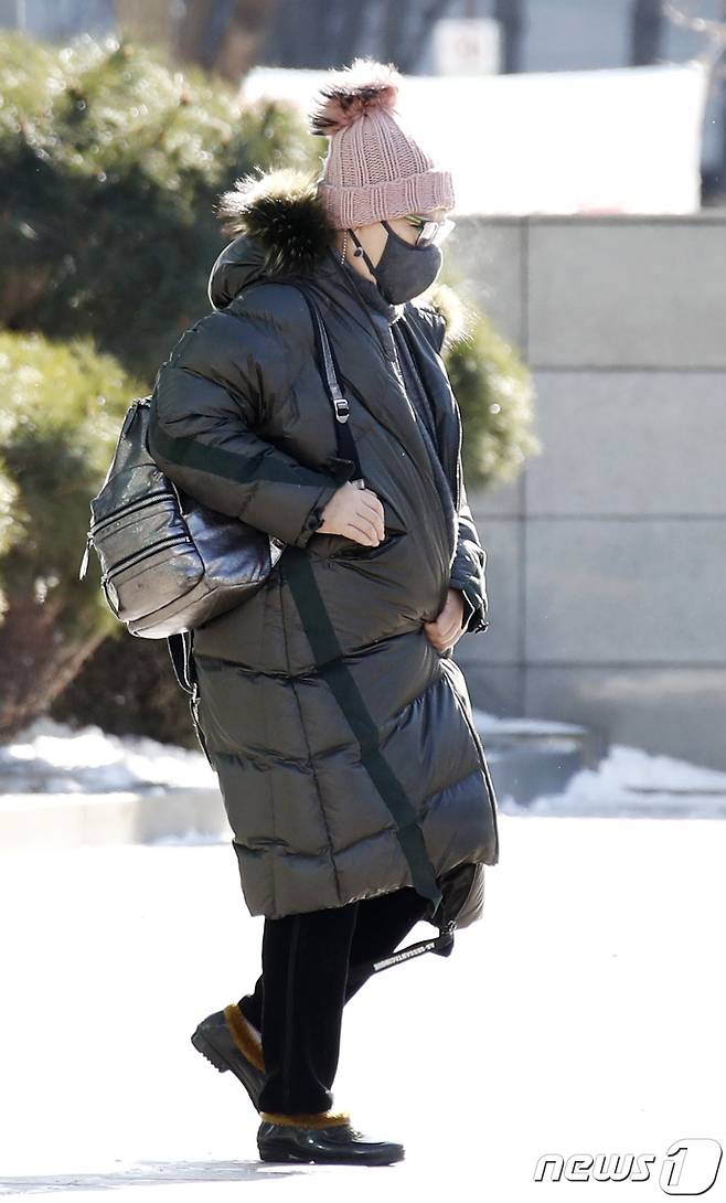 양희은 '강추위 패션 포인트는 핑크모자와 털신'