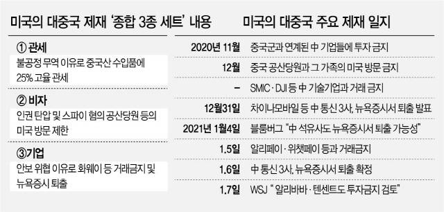 오는 20일 물러나는 트럼프 대통령은 퇴임 일자가 가까워질수록 중국에 대한 공세의 속도를 올리고 있다. 지난 6일 차이나모바일 등 중국 3대 국유 통신사에 대한 뉴욕증시 퇴출을 확정했는가 하면 앞서 5일에는 알리페이와 위챗페이 등 8개 중국 애플리케이션에 대한 거래 금지 행정명령을 내리기도 했다.