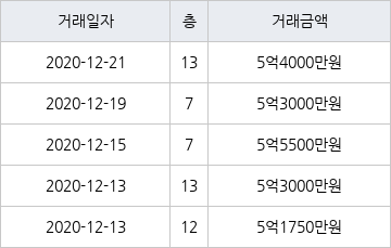 국토교통부 실거래가 공개시스템에 따르면 지난 2020년 12월 21일 서울특별시 양천구 신정동 신정학마을1단지 13층 전용면적 49㎡형이 5억4000만원에 거래됐다. 지난 2020년 12월 21일 같은 면적형인 13층 물건이 5억4000만원에 실거래된 것과 비교해 같은 가격이다.