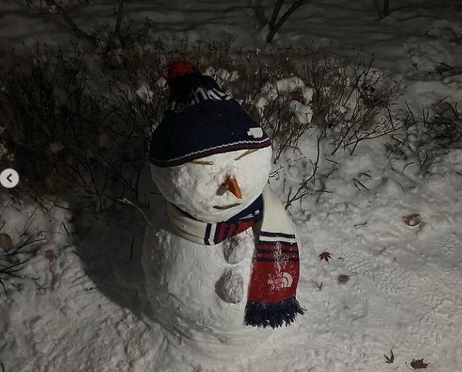 사진에는 백지영, 정석원 부부가 눈을 맞으며 커다란 눈사람을 만들고 있는 장면이 담겼다. 추운 날씨지만 딸 하임 양을 위해 눈사람을 만드는 부부의 모습에서 딸을 향한 애정이 느껴진다. 또다른 사진에는 털모자와 목도리, 나뭇가지 등으로 장식한 눈사람이 담겨 있다.