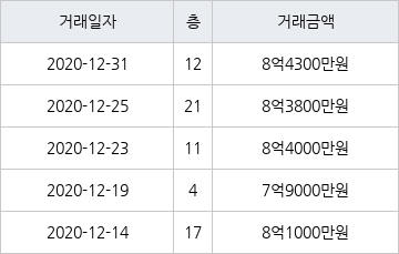 지난 2020년 12월 31일 같은 면적형인 12층 물건이 8억4300만원에 실거래된 것과 비교해 500만원 낮은 가격이다.