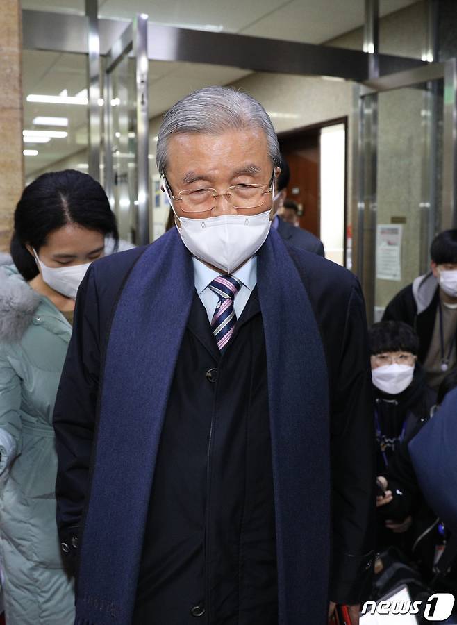 (서울=뉴스1) 신웅수 기자 = 김종인 국민의힘 비상대책위원장이 7일 오후 서울 여의도 국회에서 성폭행 의혹으로 탈당을 선언한 김병욱 의원과 관련한 취재진의 질의에 답변한 후 국회를 나서고 있다. 2021.1.7/뉴스1