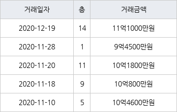 지난 2020년 12월 19일 같은 면적형인 14층 물건이 11억1000만원에 실거래된 것과 비교해 같은 가격이다.