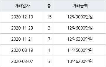 지난 2020년 12월 19일 같은 면적형인 15층 물건이 12억9000만원에 실거래된 것과 비교해 같은 가격이다.