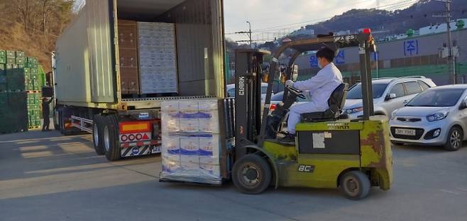 [김해=쿠키뉴스] 강종효 기자 = 경남 김해시에서 생산된 절임배추가 6일 미국으로 첫 수출길에 나섰다.