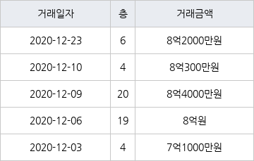 같은 기간 집계된 전용면적별 평균 실거래가격을 보면 △68㎡ 7억4333만원 △84㎡ 7억8950만원 등이다.