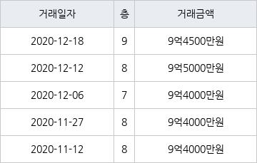 지난 2020년 12월 18일 같은 면적형인 9층 물건이 9억4500만원에 실거래된 것과 비교해 같은 가격이다.