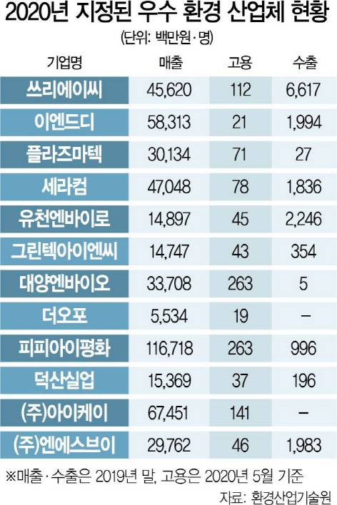 그간 우수 환경 산업체로 선정된 기업은 지정 다음 해 매출액이 평균 16% 이상 늘었고 이후에도 꾸준한 성장세를 이어갔다.