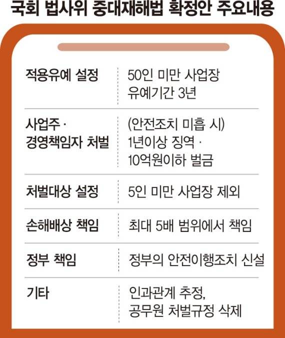 50인 미만 사업장 '3년 유예'.. 사망땐 사업주 1년 이상 징역 ['중대재해법' 법안소위 통과]