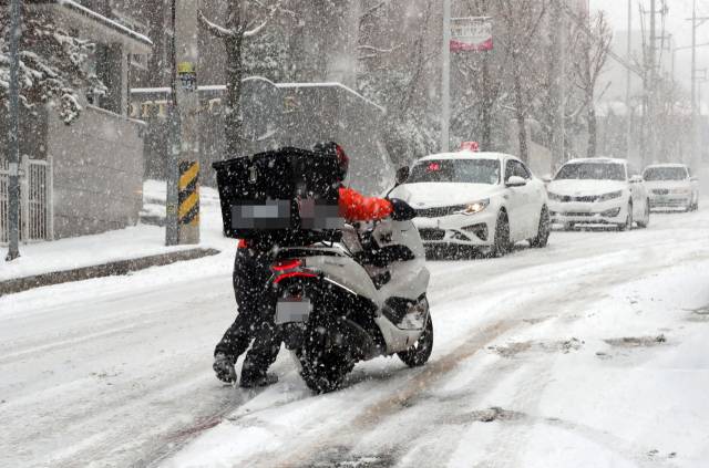 서울을 비롯한 수도권에 내린 폭설로 전국이 꽁꽁 얼자 배달도 멈췄다.