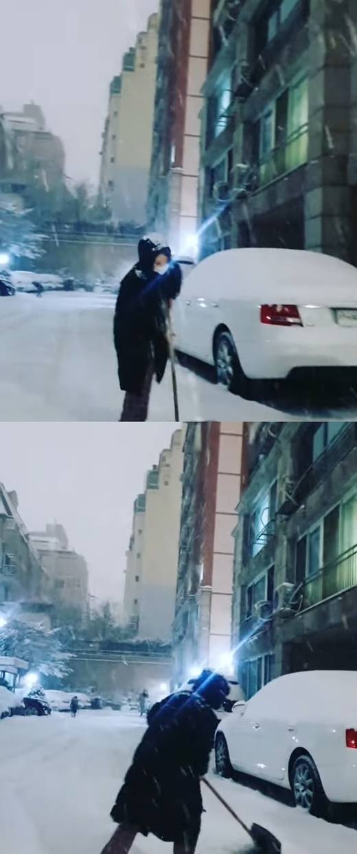 숙행, 폭설에 직접 제설작업 "경비아저씨 혼자 고생, 내 집앞은 내가 치운다"