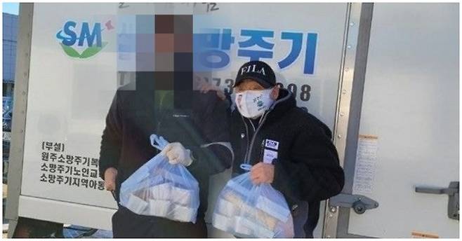 함께 공개된 사진 속에는 도시락 배달 봉사에 참여한 이봉주의 모습이 담겼는데, 등이 굽은 이봉주는 허리를 제대로 펴지 못한 채 카메라를 응시하고 있다.