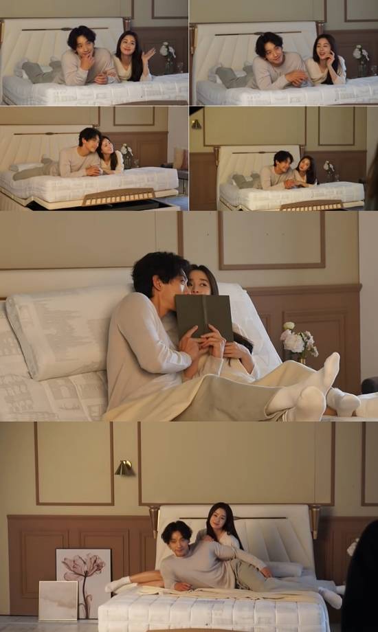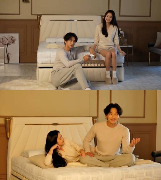 영상에는 지면 광고 촬영 당시 현장 모습이 담겼다. 해당 브랜드 침대의 공동 모델인 비와 김태희는 손을 잡고 눈을 맞추는 등 자연스럽게 다정한 포즈를 취했다.