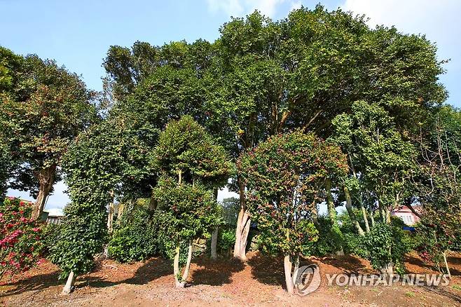 (서귀포=연합뉴스) 전수영 기자 = 제주 서귀포시 남원읍에 있는 위미리 동백군락지에는 수령 100년을 넘긴 거대한 토종동백 나무들이 돌담을 따라 늘어서 있다. 안쪽의 애기동백 나무는 군락지를 조성한 현맹춘 할머니의 증손자 오덕성 씨가 심은 것이다. 2021.1.7