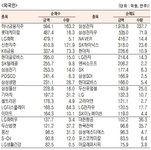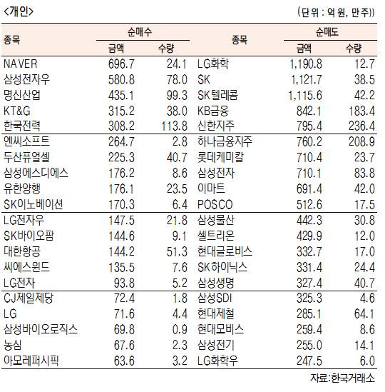 - [표]주간 유가증권 기관·외국인·개인 순매수·도 상위종목(12월 28~30일)