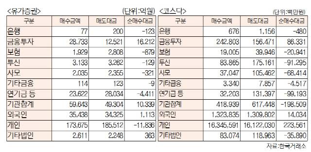 [표]유가증권·코스닥 투자주체별 매매동향(1월 7일-최종치)